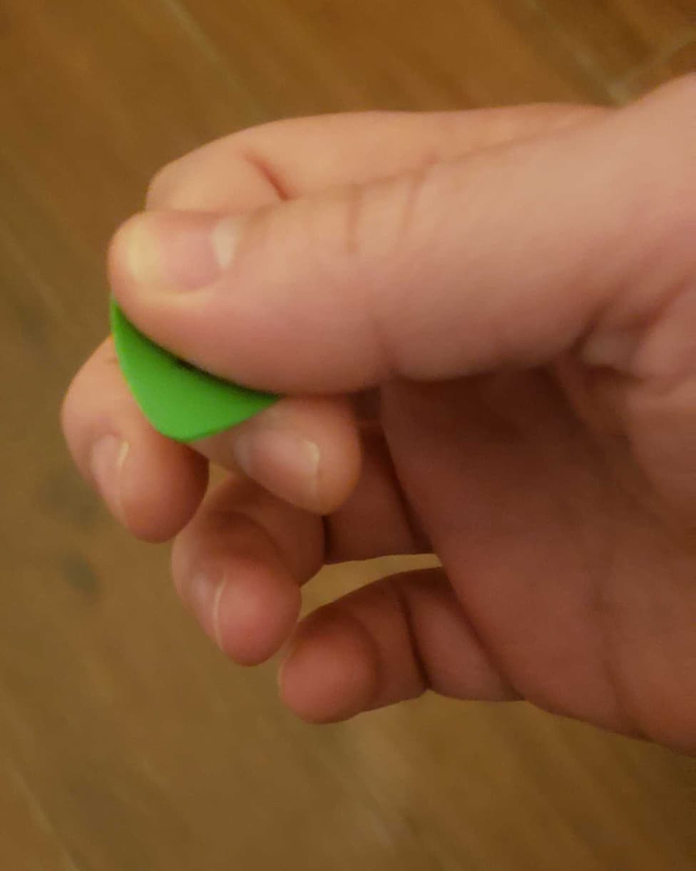 I’ve started using a “tighter” trigger grip recently, by which I do NOT mean “more force” but “pick is partly over the DIP joint of the index finger, but slightly past” I’ve found that this paradoxically allows me to use less force holding the pick and still get good haptic feedback. It also seems to enable a wrist-only DBX motion that I find quite awkward when using an extended trigger grip (pick mostly held by the thumb over the distal phalanx of the index finger).