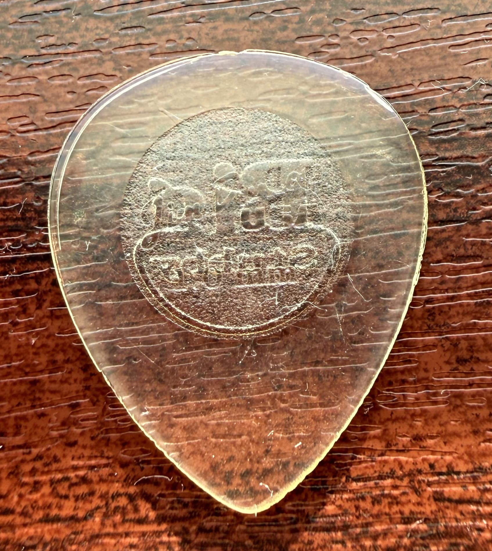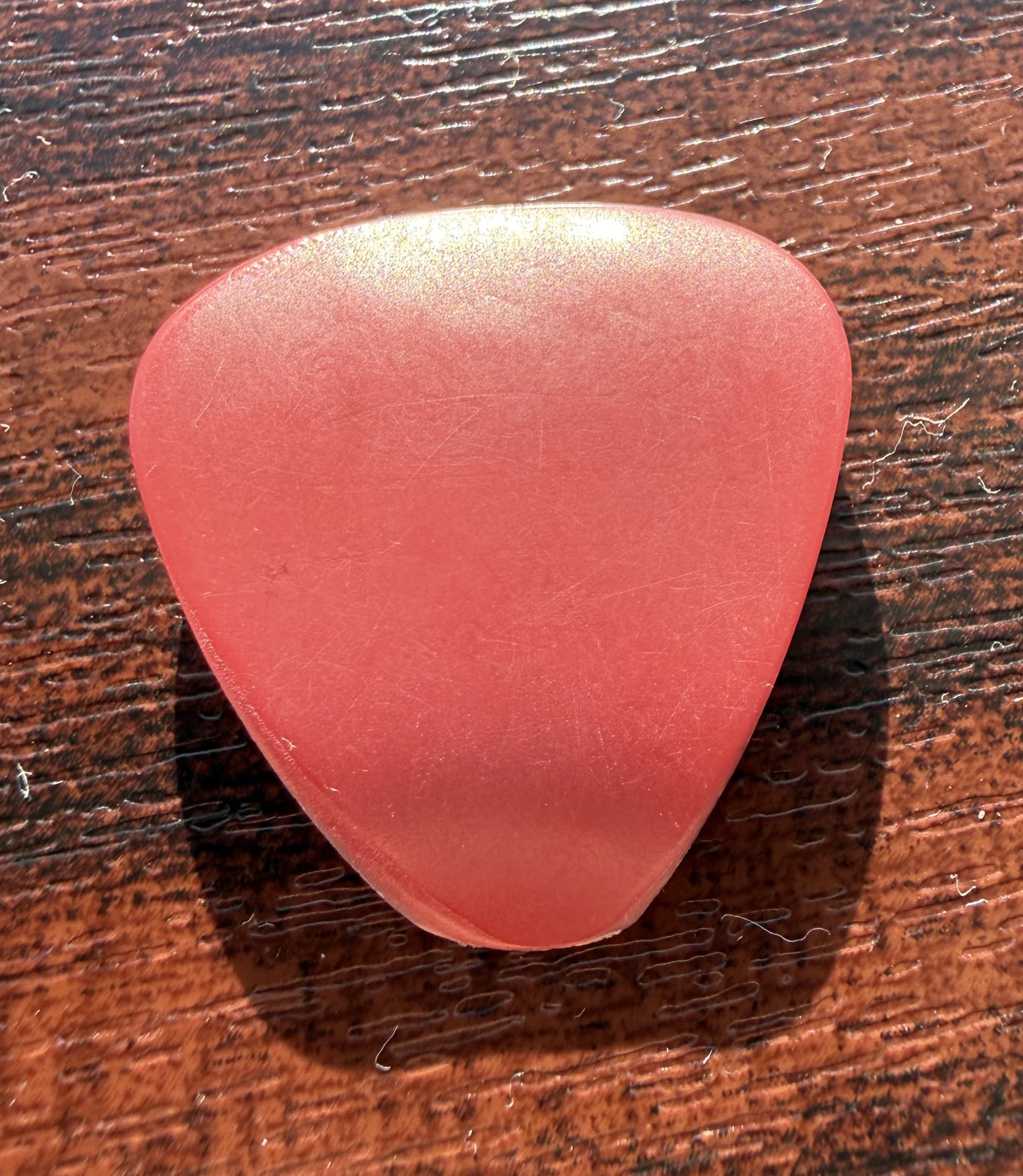 The other one is this Dunlop .50mm Tortex. I played with this pick straight for about 5 years. I’m not sure what happened to it, but it’s kind of warped. It has nice wear on it.