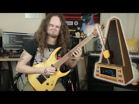 Just some practicing of one of the runs in Scarred, going from 120bpm to 210bpm 16th notes. It falls apart around 180. At 210 I’m off the beat…