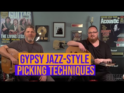 The upstroke escape picking strategy isn’t something exclusive to gypsy jazz. Many people arrive at that picking style without it having something to do with gypsy jazz in particular.