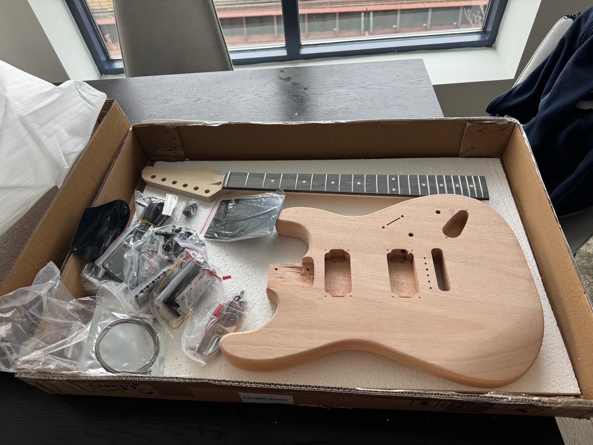 I was planning to commission a forever guitar with a custom builder but the truth is I only trust myself when it comes to custom builds, so I decided to get a Glarry guitar: the cheapest kit I could find to practice finish, build and setup on it before I commit to a more serious build with unnecessarily expensive parts.