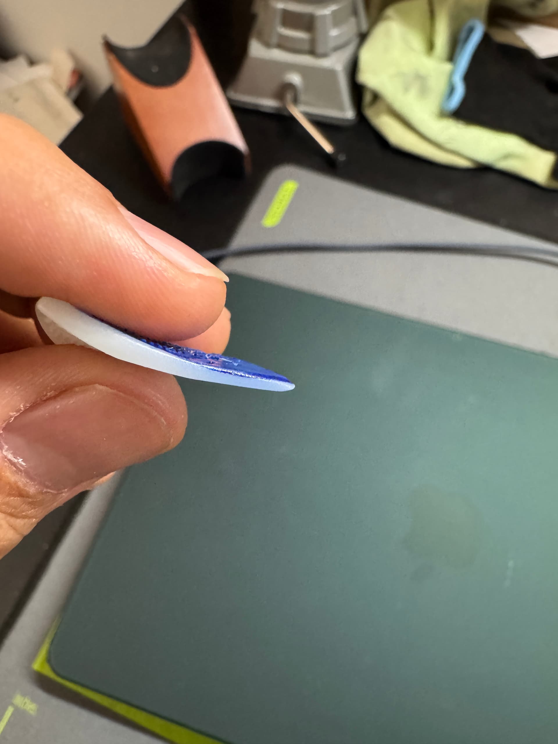 The thing with these picks is that they have some waves in the shape that kinds cancel the force of the string against the pick, they have a sort of beak on the tip that can help you achieve picking angles that would require a change of posture otherwise, and glow in the dark. Also, if they have a beak pointing to one direction, you would assume the beak would point in the opposite direction if you flip the pick, right? well, that’s not the case, that’s why it feels like you can’t lose or hold these picks wrong*.